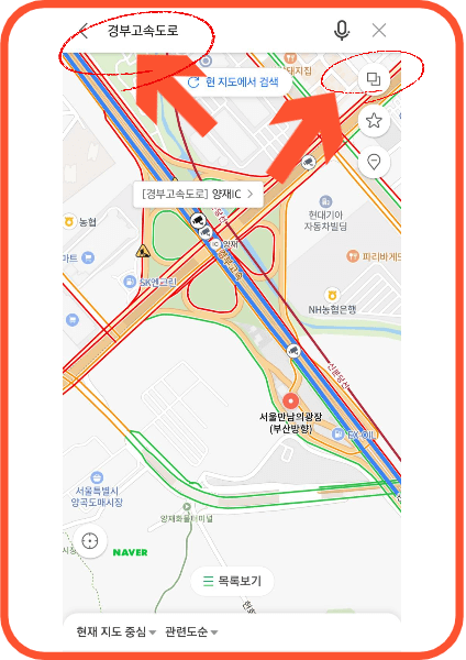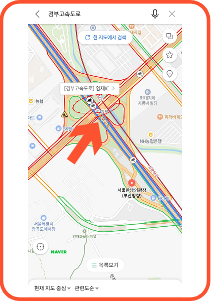 네이버지도 앱을 통해 실시간 고속도로 교통상황 CCTV확인