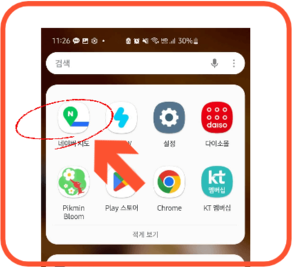 1. 네이버 지도 앱을 다운로드 합니다. 다운받은 네이버지도 앱 아이콘을 클릭합니다.