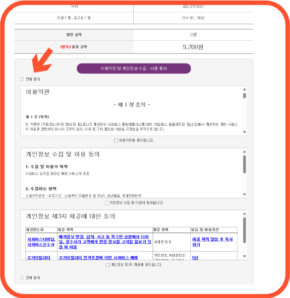 5. 이제 이용약관에 전체 동의를 체크하고 스크롤 해서 아래로 내려갑니다.