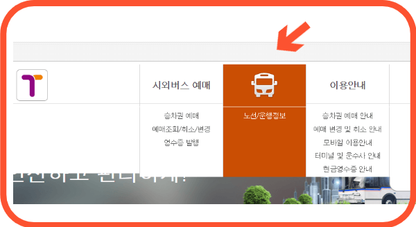 1. 검색을 통해 시외버스통합예매시스템 홈페이지를 접속합니다. 노선운행정보를 클릭합니다.