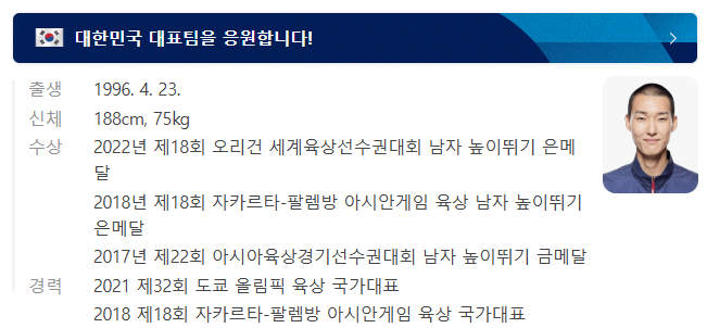 우상혁 선수 프로필