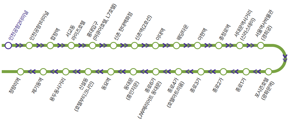 | 인천공항 제 1터미널 > 청량리역 | 05:35 | 23:30 |