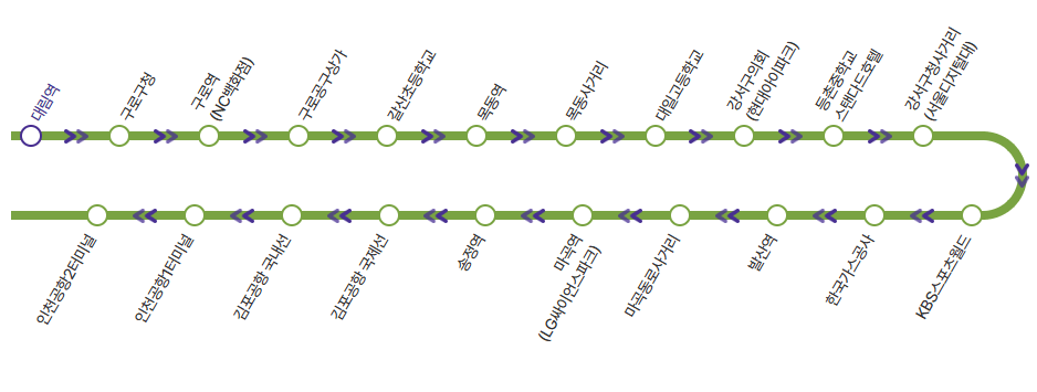 | 인천공항 제 1 터미널 > 대림역 | 05: 50 | 23:10 |