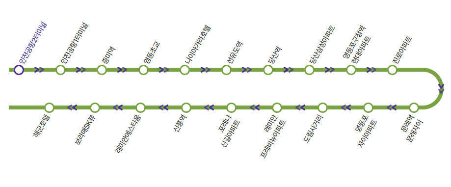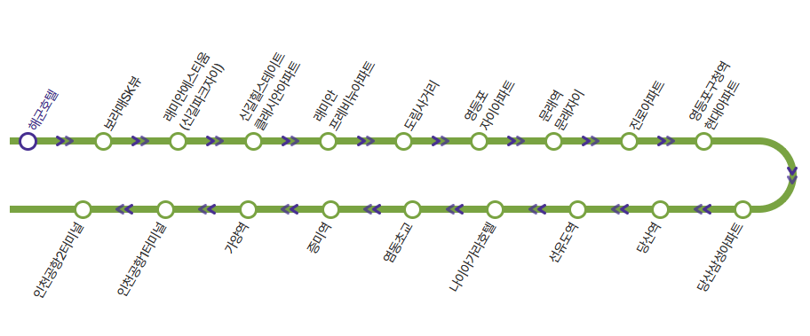 ▶ 해군호텔 앞(신길지하차도위, 신남교회 옆) > 인천공항2 터미널 방면